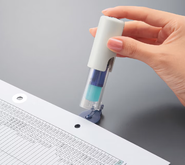 The Kokuyo One Patch Stamp for repairing torn loose-leaf holes for binder pages is that item. I came upon this item because it was gifted to me by a student.