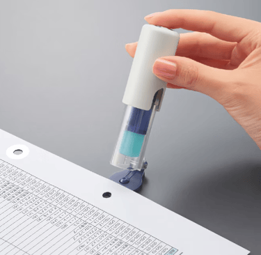 The Kokuyo One Patch Stamp uses a transparent patch to firmly reinforce any torn holes for papers organized in your binder. The stamp is simply so easy to use. When my students see me using it, they immediately want one of their own.